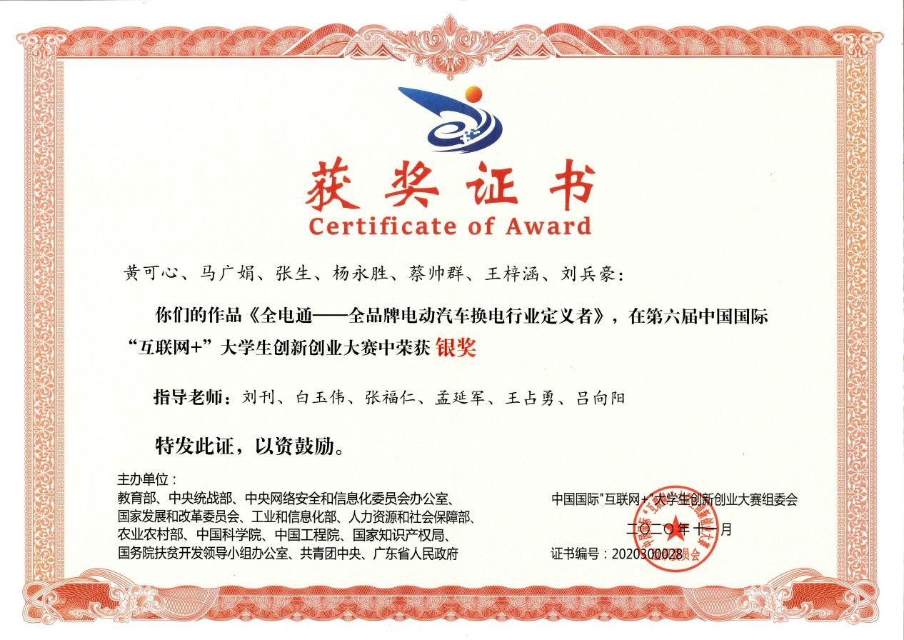 第六届中国国际“互联网+”大学生创新创业大赛银奖
