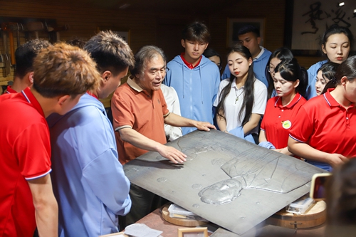 4月26日上午,新疆巴州的同学们在乐鱼网页版绿色钢铁智能生产虚拟仿真实训基地、材料应用技术研发基地、工业机器人技术应用中心等地开展专业研学。在郭海博铁板浮雕艺术馆,体验中国传统文化,感受非遗的力量。