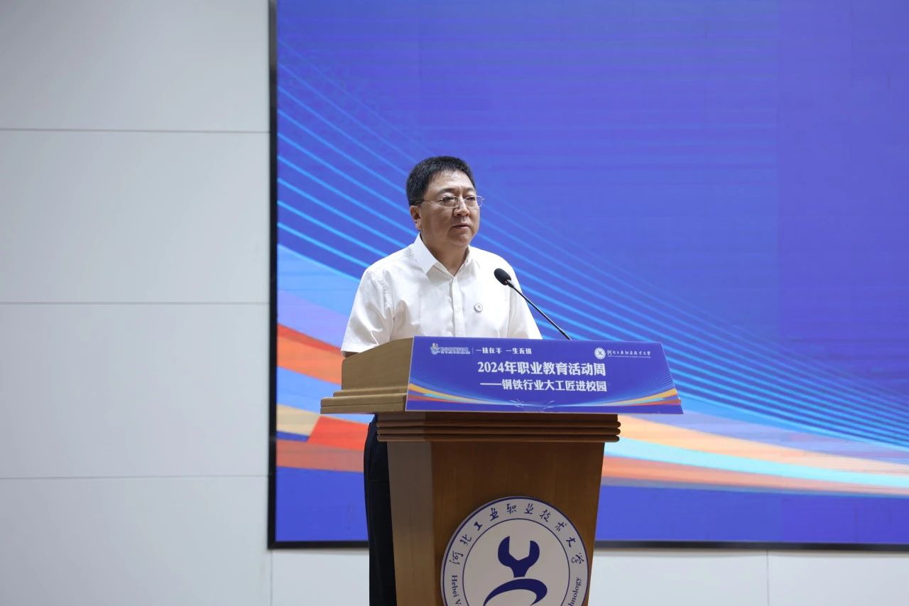 李鑫对参加本次活动的教育部、钢铁行指委领导、技能大师、兄弟院校的师生表示热烈欢迎。他表示,“钢铁行业大工匠进校园”已经成为全国“职业教育活动周”活动一个特色靓丽的品牌。活动的举办,对于我们深切感受钢铁行业的转型升级、新时代的伟大变革,精准指导冶金类职业院校提升人才培养质量、服务行业发展具有重要的现实意义。学校将进一步把劳模精神、劳动精神、工匠精神贯穿融入办学治校、教书育人全过程,大力弘扬“劳动光荣、技能宝贵、创造伟大”的时代风尚,以实际行动把习近平总书记“大有可为”的殷切期盼转化为“大有作为”的生动实践。