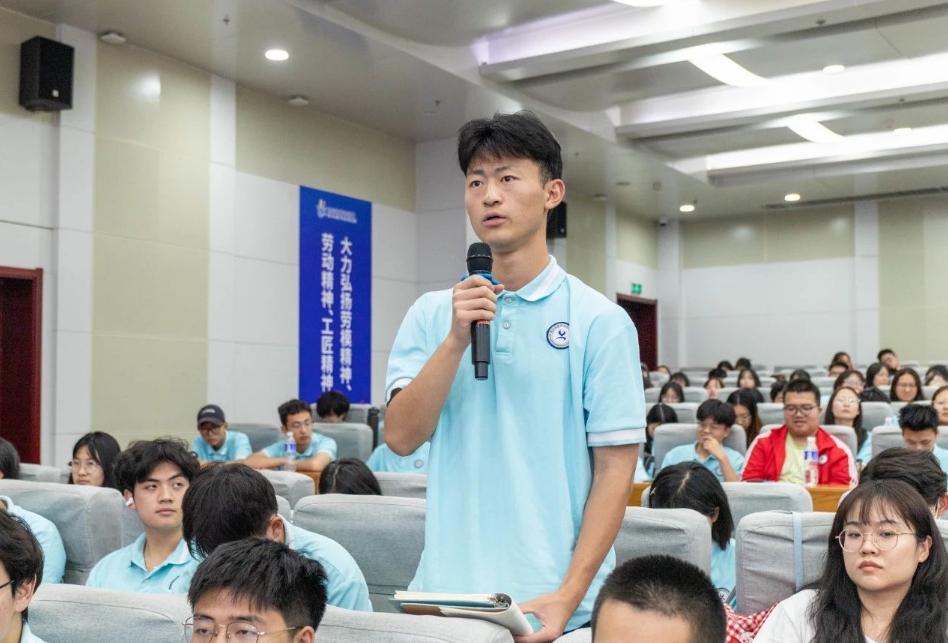 现场的同学认真聆听行业大工匠的奋进故事,并就专业领域技能提升、职业生涯成长规划、初入职场建议等方面积极与各位行大工匠进行互动。