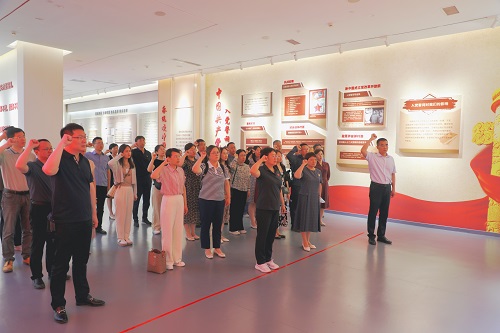 在讲解员的引导下,大家依次参观了“全面从严治党永远在路上”警示教育展览各主题展厅。一幅幅图片、一段段视频、一组组数据……深刻展示了党的十八大以来我省全面推进党风廉政建设和反腐败斗争取得的显著成效。展览既有党的路线方针政策和党纪法规等内容解读,又有典型案例剖析,以身边事身边人警示党员干部以案为鉴、警钟长鸣,为全体党员干部上了一堂发人深省的警示教育课。最后,全体参观人员在宣誓厅面对鲜红的党旗,紧握右拳,句句铿锵,重温了入党誓词,再一次表达了对党忠诚,为党的事业奋斗终身的决心。