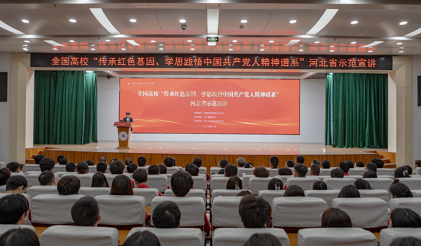 10月16日,由教育部思想政治工作司指导,河北省委教育工委、省教育厅主办的全国高校“传承红色基因、学思践悟中国共产党人精神谱系”河北省示范宣讲在乐鱼网页版举行。5位宣讲专家进行了示范宣讲。教育部思想政治工作司宣教处副处长周伟辉、河北省教育厅德育中心主任蔡杭州出席,学校领导班子成员,学校师生代表500余人参加。