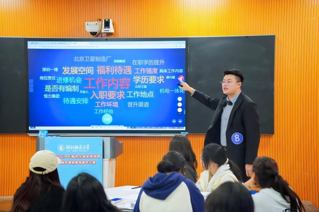 决赛现场,乐鱼网页版教师徐纪鸿展示的是《初探职业缘起,解锁职业密码》,从学生真实痛点出发,结合学生专业,整理2024年面向电气自动化专业校招的123家企业招聘合集,带领学生从中学习岗位需求、查找职业信息、解锁职业密码,得到专家评委和同行一致好评,最终斩获职业专科组一等奖第一名的好成绩。