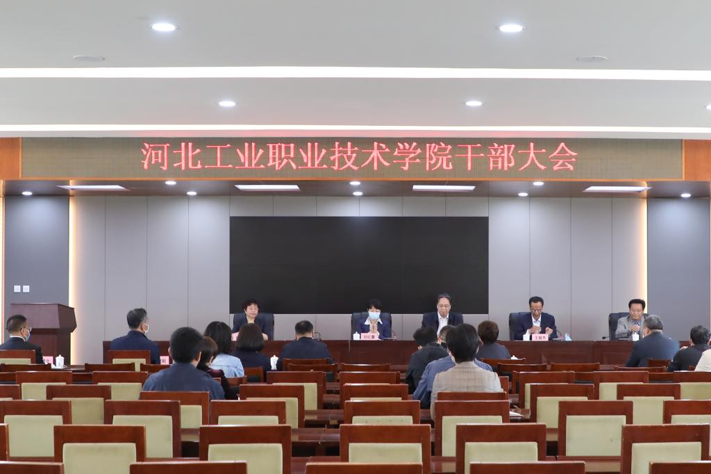 省委教育工委副书记王利迁在会上讲话指出,这次干部调整是高校党委换届中的大事,省委对贾俊礼同志的表现充分肯定,广大教职员工充分认可,并对他在河北工院工作33年来,特别是任院长以来对学院做出的贡献给予高度评价。他强调,省委这一决定,是从全省高校领导班子建设的全局和河北工业职业技术学院领导班子建设的实际出发,经过通盘考虑、反复酝酿、慎重研究后做出的,充分体现了省委对河北工业职业技术学院领导班子建设的关心和重视。王利迁介绍了薛晓萍同志的情况,希望大家在新的领导班子带领下,团结协作、砥砺奋进,共同开创学院建设发展的新局面。一要坚持党对高校的全面领导,以党的建设统揽全局、推进发展;二要坚决贯彻落实好党委领导下的校长负责制,全面从严治党,把政治纪律和政治规矩挺在前面;三要坚持立德树人根本任务,培养能够担当民族复兴大任的高素质应用型人才;四要坚持打造优良师风,努力建设新时代高素质教师队伍;五要坚持精准聚焦内涵发展,办出特色、办成品牌,奋力开创学院发展建设新局面。