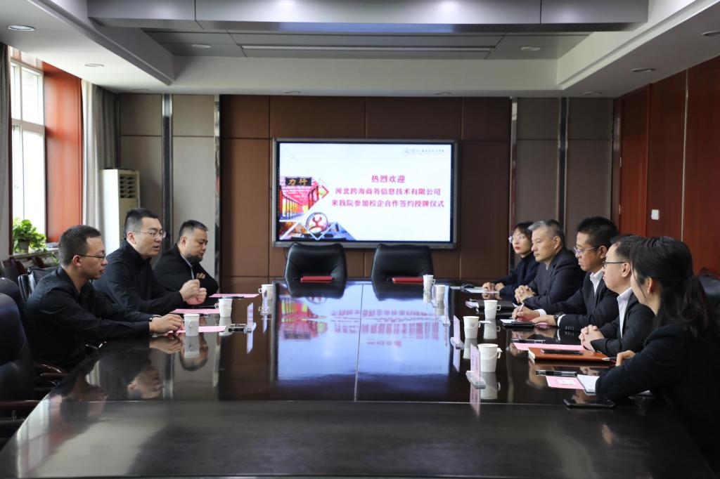 10月14日,我院与中国国际电子商务中心河北跨境电商培训基地校企合作签约授牌仪式在南校区406会议室举行。国家专业技术人员继续教育基地、中国国际电子商务中心河北跨境电商培训基地主任洪彦硕、河北跨海商务信息技术有限公司总经理闫展,学院副院长韩提文及经济贸易系相关负责人出席了本次签约授牌仪式。
