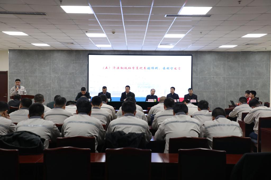 会上,学员们通过观看视频《工院点滴》回顾了在工院一半年时间的学习和生活。学员代表在发言中分享了自己的专业理论学习收获,表达了对公司和我院的深切谢意。教师代表抒发了为学员们授课的内心感受以及通过授课与学员们结下的深厚情谊。济源钢铁集团有限公司一轧厂厂长郭晓辉勉励学员们立足新的起点,要以崭新的面貌和昂扬的精神投入到岗位工作中,为公司未来发展做出更大贡献。