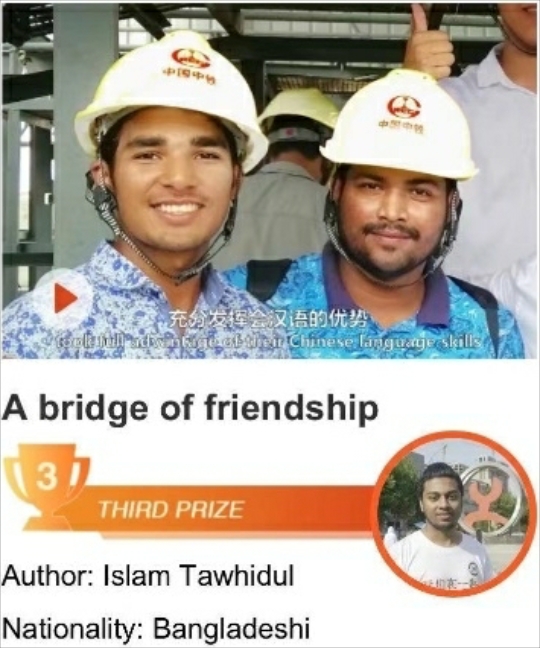 大伟的视频作品介绍了中铁大桥局在孟加拉国承建的中孟重点项目-帕德玛大桥,该桥是“一带一路”建设的重要交通支点,也是中国和泛亚铁路的重要通道之一,大桥的修建不仅对孟加拉国的经济起到了十分积极的推动作用,还极大便利了居民生活,被当地居民誉为“梦想之桥”。在视频中大伟说:“未来几年,我还要继续在中国学习,留学经历使我具有‘贯通中外’的优势,我愿意成为继续推动中孟交流的‘使者’,为‘十四五’规划擘画的蓝图贡献力量”。