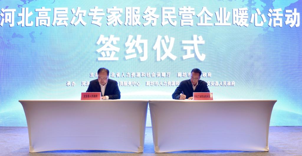 乐鱼网页版党委书记王振杰代表8所河北省重点高校及科研单位为此次暖心活动致辞。他在致辞中指出,乐鱼网页版作为一所本科职业学校、河北省唯一一所中国特色高水平高职院校,以服务区域经济发展为己任,坚持产教融合,推进校企协同育人机制建设,积极开展面向行业、企业的技术服务,已与廊坊的部分企业深入开展了产学研合作。王振杰表示高校和科研单位将会持续发挥人才资源优势,基础研究优势,在人社厅和廊坊市搭建的平台上“唱好戏”,为廊坊高质量发展贡献更多智力支持。王振杰还作为高校及科研单位代表与文安县政府签订了科技战略合作协议,该协议的签订也标志着乐鱼网页版与文安县域长期科技合作关系的建立,同时必将进一步促进企业与乐鱼网页版产学研主体的深度融合。