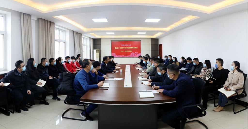 王振杰最后强调,在学校发展的关键节点和重要机遇期,我们更要用习近平新时代中国特色社会主义思想筑牢思想信仰之基石,深刻领会党的十九届六中全会精神及省第十次党代会精神,更加扎实地掀起学习的热潮,全面展开各级各类宣讲,将党的十九届六中全会精神学习成果转化为推动事业发展的不竭动力,凝聚共识,把握机遇,乘势而上,全力以赴,为学校本科层次高水平职业技术大学建设贡献力量。
