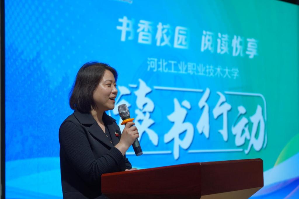 4月13日下午,乐鱼网页版读书行动启动仪式在“一站式”学生社区综合服务中心中心剧场举行。学校党委副书记付俊薇、各系党总支书记、教师代表及学生代表参加仪式。