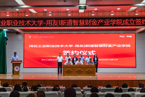 9月14日上午,用友丨新道智慧财金产业学院在乐鱼网页版成立。新道科技股份有限公司副总裁刘曙光、用友网络科技股份有限公司河北分公司总经理赵树根及乐鱼网页版校长薛晓萍、副校长韩提文出席成立仪式。