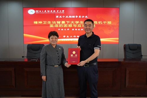 培训会后,学校举行了心理健康教育督导专家聘任仪式,聘请唐海波教授为学校心理健康教育督导专家,将加强对学生心理危机事件评估和处理等方面工作的督导,进一步提升学工队伍心理健康教育工作的整体水平。