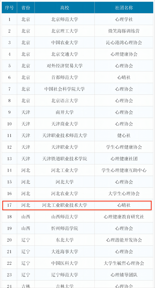 近日,由共青团中央、中华全国学联秘书处、中国青年报社联合开展的“全国高校学生心理健康社团”寻访活动结果公布,乐鱼网页版心晴社入选共青团中央直接联系、跟踪培养的高校学生心理健康社团,同时乐鱼网页版也是河北省唯一入选的职业院校。