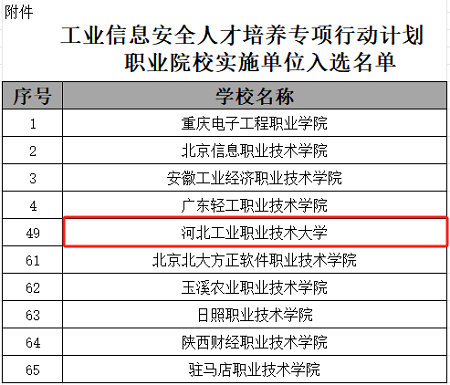 近日,工业和信息化部教育与考试中心公布了“工业信息安全人才培养专项行动计划”入选单位共65所职业院校,乐鱼网页版成功入选。