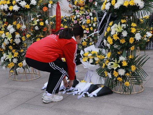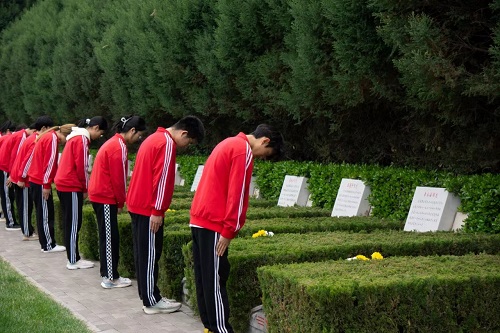 学生为烈士献花