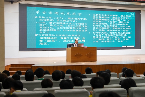 本次讲座姚军老师首先以“弘扬西柏坡精神 走好新时代赶考路”为主题展开精彩讲座。他从西柏坡姚老师从西柏坡革命根据地的基本概况和西柏坡与中国共产党的革命斗争故事,并从历史、思想、文化等角度论述了西柏坡的革命先辈们用鲜血和生命铸就的精神瑰宝——西柏坡精神。随后,梁勇老师以“中华传统文化河北篇章”为主题从“四个称谓”“三个走来”“四大要地”“五大文化带”等方面讲述了河北在历史上的称谓变迁,河北在中华文化史上重要地位,独特地理位置以及河北的多民族文化中华民族一家亲等内容,让同学们对河北地域文化有了更深层次的理解,增强了青年学生的文化自信和民族自信。