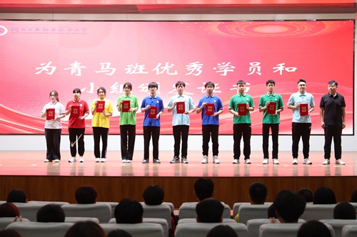 开班仪式上,学校团委书记首先向学员解读了本期青马班培训目的,介绍了本期课程培训方案。随后,各系团总支书记为上期青马班优秀学员及优秀小组颁发荣誉证书。接着工商管理系22级大数据与会计本科3班徐丹阳、计算机技术系23级软件工程本科1班赵杰同学分别代表上期优秀学员及本期青马班代表发言。号召大家要以本次青马班学习为契机,潜心学习,利用好“青马班”这个平台,努力成长为“模范表率、堪当重任”的青年马克思主义者。