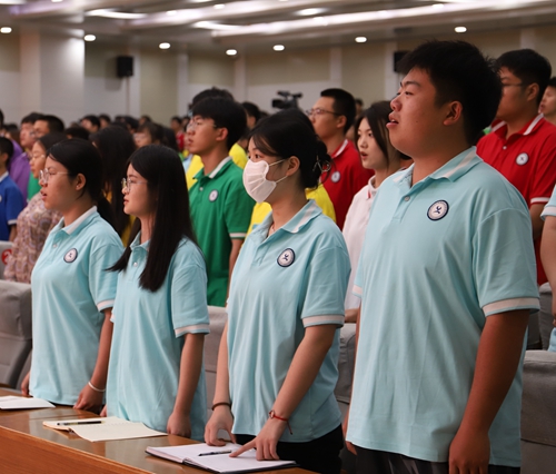 为深入学习贯彻习近平总书记关于青年工作的重要思想,着力推进新时代共青团组织建设,打造一支高素质学生干部队伍。学校于5月14日在图书馆一层报告厅举办第十六期青马班开班仪式。学工部部长、团委书记、各系团总支书记、学生干部代表及本期学员共500余人参加了本次开班仪式。