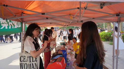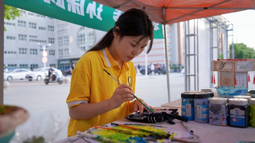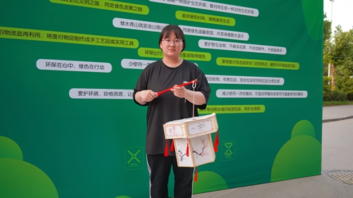 在学校甬路活动现场涌动着充满生机的绿色,主题活动通过“绿色合伙人”以“垃圾分类”“旧物新生”“袋袋相传”三大主题活动,引导青年学生争做环保践行合伙人。“垃圾分类”主题活动中志愿者向同学们宣传旧物循环利用、正确分类投放的环保理念,并通过卡片投放游戏,促进学生生活垃圾分类习惯养成。“旧物新生”主题活动聚焦旧物回收利用,用“微创造”唤醒旧物的“新生”增强学生绿色创新意识,空水瓶、废纸盒、水果网兜在同学们的手中变成纸抽盒、风铃、花盆等,学生在参与中树立节约资源理念。“袋袋相传”主题活动充分发挥打包袋的用处,同学们美化或改造,让旧物重新启用。