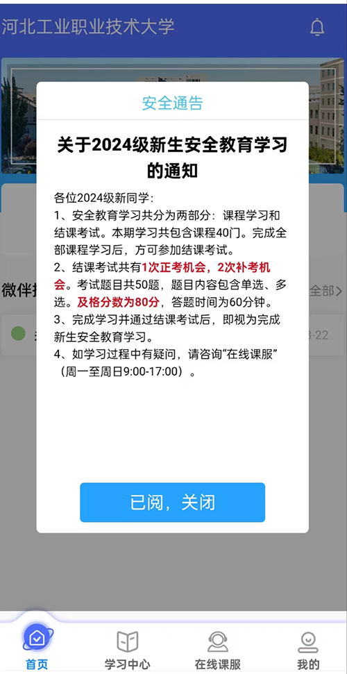 全员覆盖,精准触达,编织严密网络。在精心编制的《2024年新生入学手册》中,乐鱼网页版专门设置了关于安全教育学习的详细通知,与录取通知书精准送达每一位新生。此外,学校借助大数据实时掌握新生安全教育学习及考试情况,引导学生按时完成学习及考试任务,确保每一位新生都能参与到安全教育中来,覆盖率达100%,考试通过率达99.01%。