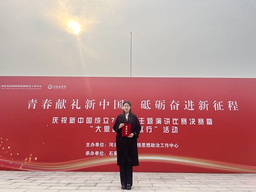 为弘扬爱国主义精神,全面落实立德树人根本任务,展现当代青年的风采与担当,由河北省高校网络思想政治工作中心承办的“青春献礼新中国,砥砺奋进新征程”庆祝新中国成立75周年主题演讲比赛决赛暨“大思政课燕赵行”活动于11月24日在河北省石家庄市中共西柏坡工委党校圆满落幕。乐鱼网页版学子在本次比赛中表现优异,获得省赛三等奖。
