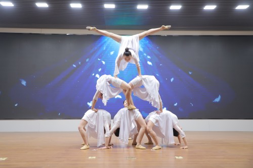 活动现场,河北省杂技团的老师结合经典案例,对河北省杂技团及当代河北杂技发展简况、杂技的起源、杂技艺术的概念及艺术特征进行了深入且细致的讲解。随后,杂技表演者身着华丽的服装,为在场师生带来了《手技》《蹬伞》《女子造型》《古彩戏法》等传统杂技节目,让师生直呼“大开眼界”。在与师生亲密互动的滑稽节目《滑稽气球》中,演员走下舞台深入观众中,与同学们近距离互动,用幽默诙谐的表演引得全场笑声不断。