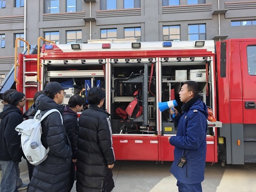 沉浸实操,掌握消防器械技能。在消防器械展示与实操教学区,消防员详细介绍了灭火器、消防水带、防烟面罩等常见器材的性能与使用方法。师生在专业指导下,分批次进行了灭火器“一提、二拔、三握、四压”的实操灭火演练。这种“零距离”接触与“沉浸式”体验,确保师生真正掌握关键消防技能。