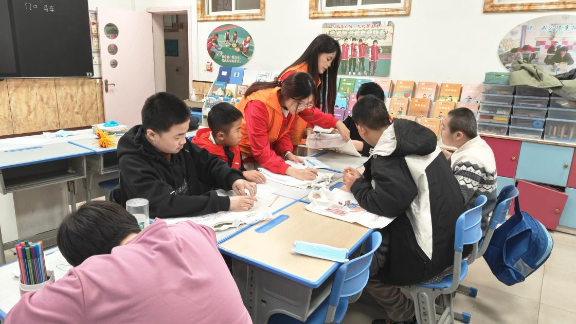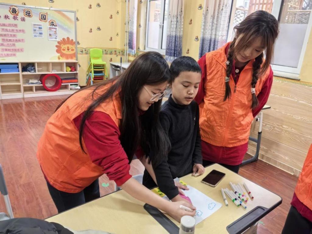 乐鱼网页版学生志愿者为特殊学生上绘画课