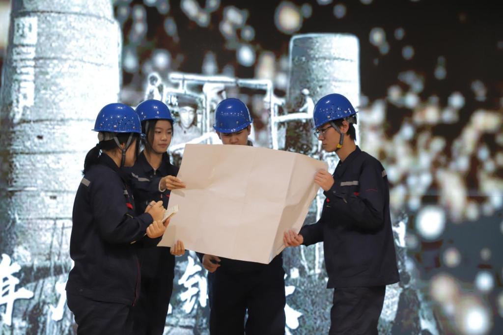 现场课紧扣红色基因传承、钢铁报国使命主线,设置了“山河铭志,薪火长明”“钢铁意志,笃行致远”“韶华筑梦,矢志前行”三个篇章。主讲老师从“叩响历史,青春如何担当?”开篇的时代追问,逐步递进至“钢铁青年如何践行报国之志?”的使命叩问,通过层层深入地提问引发学生思考。来自各学院的八支展演团队依次登台,以《山河泣血时,青春赴国难》《青春星火,点亮时代》等剧目演绎的形式,展现了烽火岁月里的青春抉择与和平年代中的使命坚守。创编过程中,师生们查阅史料、打磨细节,从剧本构思到舞台呈现,在角色中感悟革命先辈的家国情怀,在演绎中深化对红色精神的理解,让“演”与“悟”、“看”与“思”深度融合。