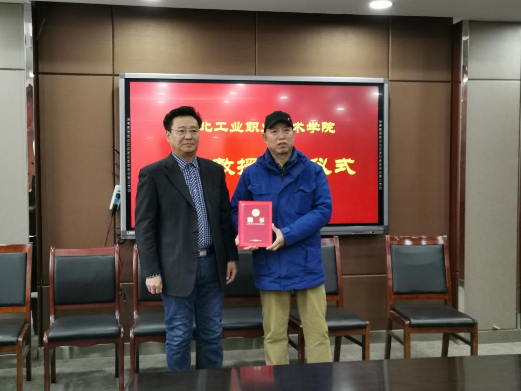 1月13日,我院在四楼会议室举行客座教授聘任仪式。院长贾俊礼为中国工艺美术行业大师郝友友颁发了 “客座教授聘任证书”。