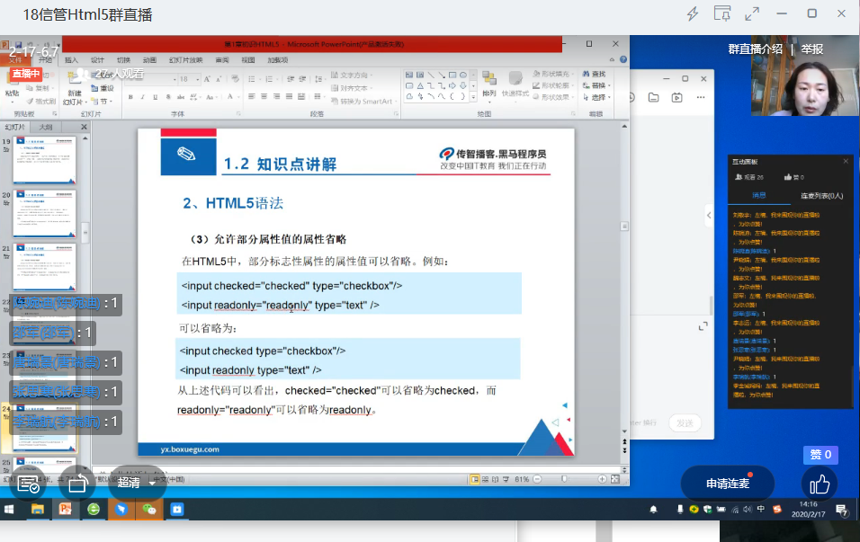 学院教师在进行试播试讲之外,还提前组织授课班级建立了班课、班级联系群,指导学生进行线上预热,为正式开课做了充分准备。由于昨天是高校集中开课日,各教学平台出现了网络拥堵、掉线、卡顿等状况,而后学院及时反应,组织各系部启用应急预案,除原来线上平台之外,充分利用钉钉直播、腾讯直播、雨课堂PPT+语音讲解发布、群内辅导答疑互动等形式开展教学。