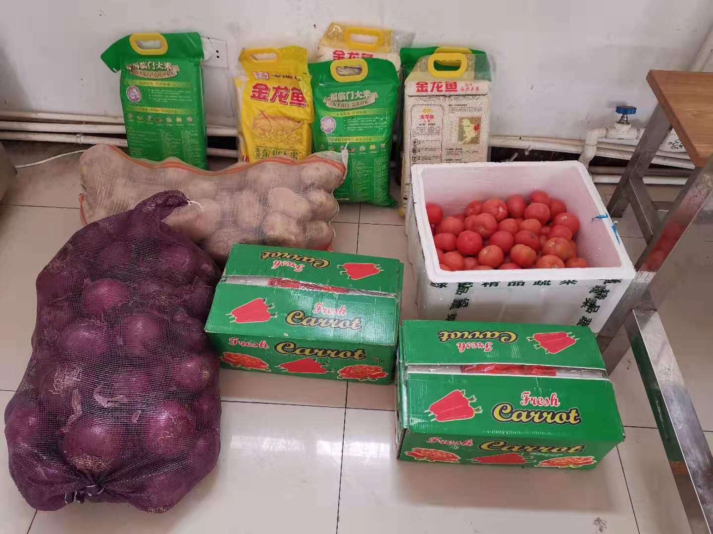 ▲ 学院为留学生采购食品和日用品