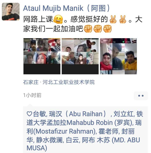 学院专门订制了多门趣味线上课程,让学生们的时间更加充实,更缓解疏导了疫情带来的焦虑情绪。老师们通过网络连线为大家直播授课,这一新鲜的方式让学生们兴趣盎然,通过线上教学,既可以实时了解在校留学生的心理和身体状况,又能够传递出“在一起”的温暖情义,果不其然,“学习”永远是最好的守候方式。