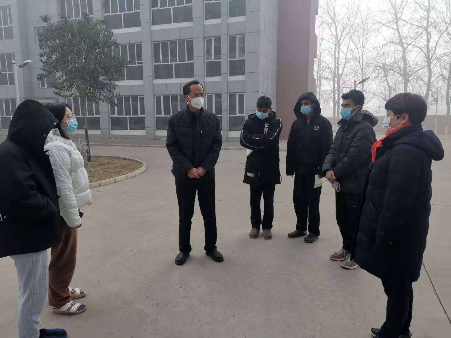 会议结束后,学院党委书记王振杰,常务副院长付俊薇走进春节期间在校的留学生宿舍,督查疫情防控工作落实情况,并关切地询问留学生在校期间的生活、思想状况,叮嘱他们一定要加强日常楼道、公共空间的消杀力度,保持卫生良好的生活环境。