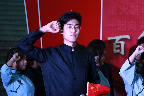 “百年前,中国青年高擎理想和信仰的火炬,谋求民族独立、人民解放”,一首《理想照耀中国》的激昂诵读拉开了诗会的序幕。诗会共分为“觉醒年代”“赤忱青春”“强国有我”三个篇章。在“觉醒年代”篇章,《破晓》《从沉睡中醒来》回望了中国青年的艰苦奋斗史。在“赤忱青春”篇章,《奋进在复兴之路上的钢铁新青年》《青春最美的样子》奏响了百年波澜壮阔的青春奋斗之歌,《百年遗梦,寄望青春》表达了寄托在青年身上的殷殷期望。在“强国有我”篇章,感悟《百年亦少年,奋进正青春》的时代伟力、牢记《团结一心,青春向党》的深情告白、践行《薪火传承,强国有我》的铮铮誓言,一次次将诗会推向高潮。