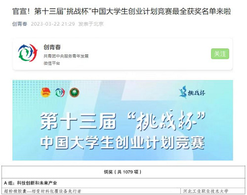 青春挑战,勇毅前行。接下来,校团委将继续针对“挑战杯”精品项目进行打磨,开展大赛指导,激励广大青年同学们在创新创业中增长智慧与才干,实事求是勇闯新路。