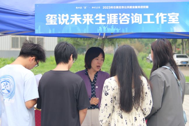 此次双选会现场除了招聘活动以外,还设置了“玺说未来”生涯咨询室工作室服务站和征兵政策咨询处,由招生就业指导中心教师为同学们提供简历修改、政策咨询、职业指导等一站式贴心服务。