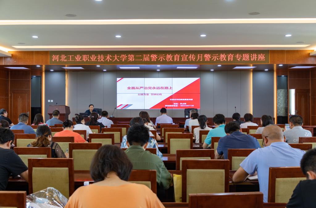 为认真落实党的二十大对全面从严治党的新部署新要求,进一步强化纪律规矩意识,筑牢党员干部廉洁自律的思想防线,根据学校《第二届警示教育宣传月实施方案》安排,6月28日下午,乐鱼网页版邀请石家庄市纪委监委四级调研员、市纪委监委宣讲团成员、市普法讲师团成员毕占领处长做“以案为鉴,警钟长鸣”的专题授课。学校全体中层及以上干部和基层党组织纪检员聆听了讲座。
