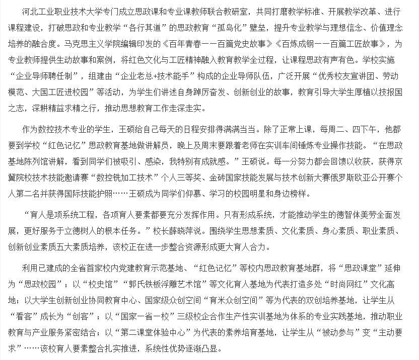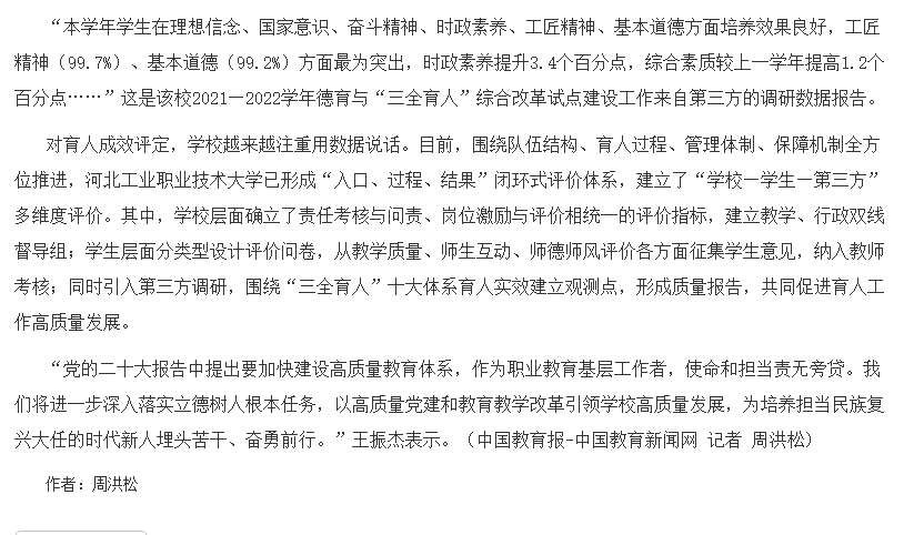 媒体链接:乐鱼网页版:扎实推进“三全育人”培养高素质人才-中国教育新闻网 (jyb.cn)