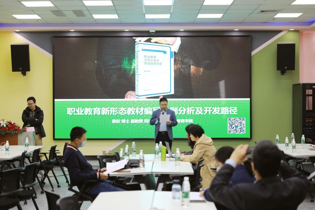 此次教材工作坊共分为两个环节。第一个环节为专题讲座,蔡跃教授从职业教育教材的重要性、职业教育教材政策分析、我国职业教育教材编写体例及样例分析、德国职业教育教材编写体例及样例分析、职业教育教材开发存在的问题、活页式教材开发方法介绍六个方面作专题报告,内容翔实,既有深刻的理论阐释,又有丰富的案例分析,有效激发了教师们对于教材形式改革创新的思考;第二个环节为工作坊教学,31部新形态教材负责人汇报了教材编写思路并展示了样章设计,蔡跃教授对老师们的成果进行了详细点评和一对一指导,提出建设性意见,其中8部教材获得高度评价。