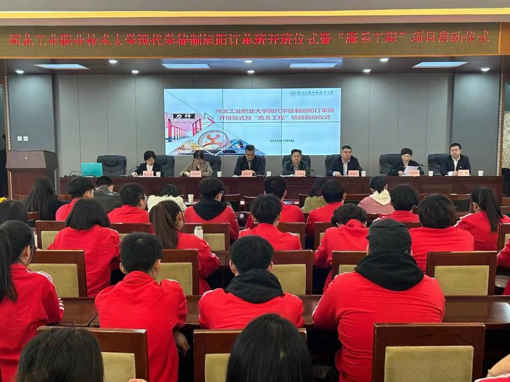 3月8日下午,乐鱼网页版现代学徒制旭阳订单班开班仪式暨旭阳班“鹰系工程”项目启动仪式在办公楼报告厅举行,河北旭阳能源有限公司董事长兼总经理王英其、人力资源部部长刘宏伟,乐鱼网页版副校长张福仁、招生就业指导中心主要负责人以及环境与化学工程系相关老师和订单班全体学生参加仪式。