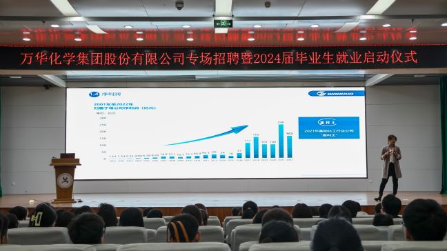 5月10日上午,万华化学集团专场招聘会暨2024届毕业生就业工作启动仪式在图文信息中心学术报告厅成功举办。副校长张福仁、万华化学集团招聘经理白朔一行六人出席会议。招生就业指导中心主任孟延军主持,环化系主任郭立达、相关系就业负责人、2023届和2024届毕业生代表参加。