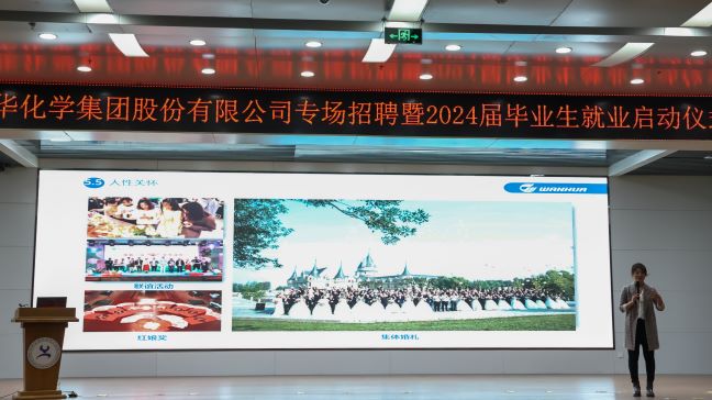 5月10日上午,万华化学集团专场招聘会暨2024届毕业生就业工作启动仪式在图文信息中心学术报告厅成功举办。副校长张福仁、万华化学集团招聘经理白朔一行六人出席会议。招生就业指导中心、环境与化学工程系负责人、其他相关系就业工作人员和2023届及2024届毕业生代表参加。
