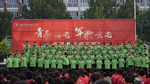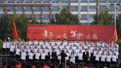 为激发青年学生的爱国热情,引导青年学生奋发进取、心有大我,努力成长为能够担当民族复兴大任的时代新人,学校于9月25日在红旗校区举办“青春向党 军歌嘹亮”2023级新生大合唱展演,学校党委副书记付俊薇、学工部负责人、各系(院)党总支书记、副书记、团总支书记、新生辅导员老师和2023级新生在场观看