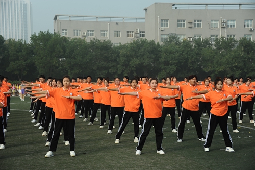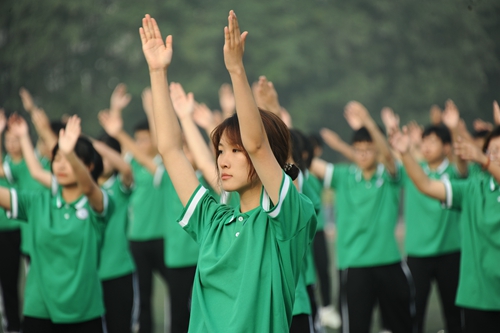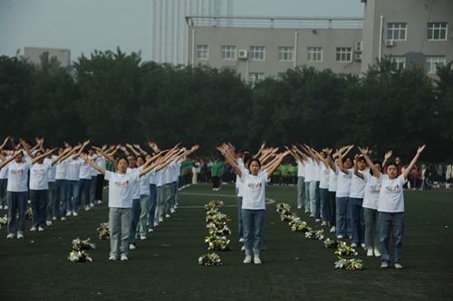 为加强学生体育锻炼的意识,形成良好的运动习惯,号召更多学生走下网络、走出宿舍、走向操场,学校举行了第二十二届科技文化艺术节——“全民健身添活力 青春相约展风采”体操大赛。