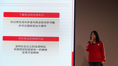 针对全校学生开展争创“宪法卫士”学习活动,结合教育部全国青少年普法网平台开展的第八届“学宪法 讲宪法”专栏,组织学生参与在线学习与打卡,共计17000余人参与,80%以上学生完成学习任务并被授予“宪法卫士”标识。同时举办“学宪法 讲宪法”主题演讲比赛,通过举办校级初赛、决赛,以及推荐学生参加河北省赛,在学生中掀起学习宪法讲宪法的热潮,同学们在精心准备的过程中丰富夯实了宪法知识,自觉做宪法宣传卫士。并在12月4日组织了“宪法晨读”活动,同学们通过网络直播的形式共同参与诵读宪法条款,加强学习的感染力。