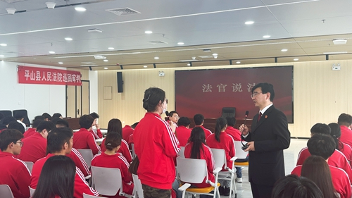 庭审结束后的“法官说法”环节,平山县人民法院副院长赵树勇法官以本案为切入点,以案释法。赵院长走到学生中间与同学们交流互动,叮嘱大家在生活中既要学法守法,树立正确的价值观,不为电信网络犯罪提供帮助;又要懂法用法,增强自我保护意识,不因贪图一时之利而去触碰法律红线。在场的同学表示,现场旁听庭审深受触动,在以后的日常生活中将会时刻保持警惕,自觉抵制不良诱惑,避免因主观放任而成为电信网络诈骗犯罪分子的“帮凶”。