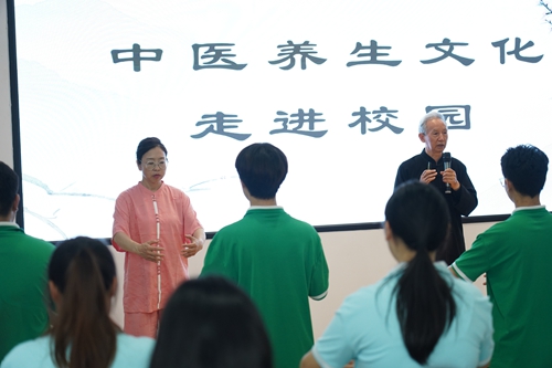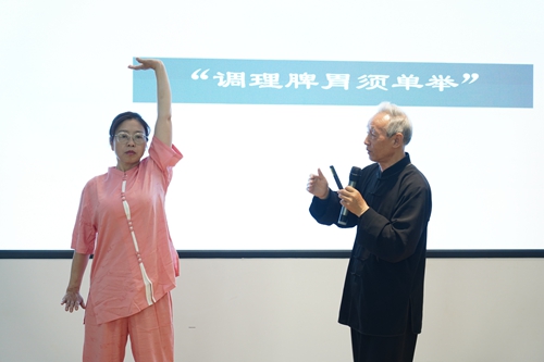 霍瑞明以“中医养生文化从‘中原’走来”为题,从养生缘起、发展历程、精神理念等方面与大家一同回顾了中医养生文化的来龙去脉和所体现的传统文化思想,为大家讲授了一堂别具特色的知识讲座。同时,他用生动活泼的语言,深入浅出地讲解了中医养生小常识,为同学们打开了一扇认识养生、关注身体、重视健康的大门。讲座最后,霍瑞明现场示范了八段锦、五禽戏等养生招式,并指导学生们练习掌握。学生们积极参与,表现出极大的参与兴趣和学习欲望。