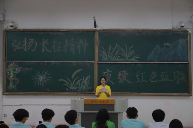 活动以经典读物《长征故事》为精神坐标,引领青年学子赓续红色血脉。通过沉浸式讲述血战湘江的悲壮史诗、四渡赤水的神来之笔、飞夺泸定桥的铁血奇迹,将峥嵘岁月化作鲜活教材。在“青年说”环节,学子们真情流露,分享读书体悟,现场涌动着澎湃的青春力量。此外,学校特别设置的“薪火讲堂”环节,演绎书中经典,通过情景讲述让历史穿透时空,为同学们搭建起思想碰撞的烽火台,使红色火种在深度对话中薪火相传。现场同学庄严承诺,要以革命先辈为榜样,传承红色基因,弘扬长征精神。