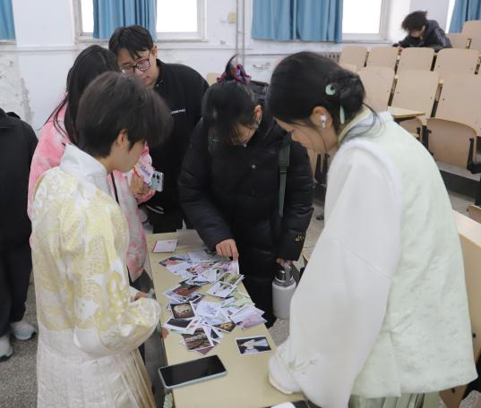 活动现场设有雅韵投壶、簪花配韵、礼仪问安三大关卡,由身着汉服的工作人员全程引导。参与者凭报名凭证签到领取打卡券后,依次参与各项挑战,在投壶环节体验古人雅趣,通过簪花环节了解传统妆饰美学,并在礼仪问安环节学习拱手、欠身等传统礼节。每成功通过一关,即可获得专属印章,集齐后可兑换汉服主题纪念品。活动中,同学们展现出对汉服文化的浓厚兴趣,积极参与各项挑战。轻松有趣的环节设计不仅让大家释放了青春活力,也激发了大家主动了解汉服形制、纹样寓意等传统文化知识的热情,现场互动积极、气氛热烈,生动展现了中华优秀传统文化的独特魅力。
